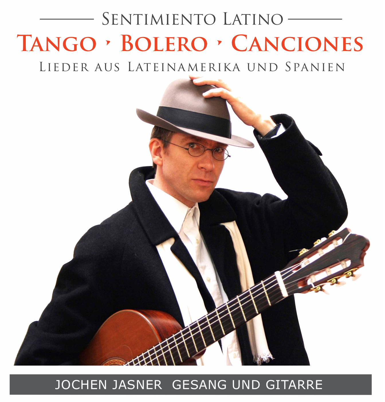 Der Düsseldorfer Chansonier und Gitarrist Jochen Jasner schickt die Freunde der spanischer Kultur auf eine mitreißende musikalische Reise durch Argentinien, Kuba, Puerto Rico, Brasilien, Ecuador und das spanische Andalusien. Jasner singt Tango-Klassiker des legendären Tangosängers Carlos Gardel und kubanische Bolero-Evergreens. Außerdem Bossa Nova, Rumba, Milonga und poetische Balladen. Bewegende Lieder, zu denen er auch einiges (auf Deutsch) zu erzählen weiß.