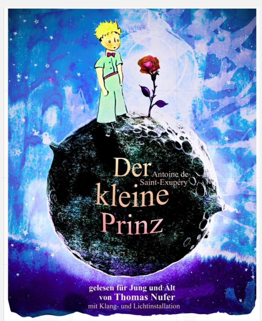Die Lesung des gesamten Textes wird von einer Lichtinstallation und stimmungsvoll-kosmischer Musik begleitet. Der Autor Saint-Exupéry erscheint hier in der Gestalt des Fliegers, dem die Begegnung mit dem kleinen Prinzen das Herz öffnet.