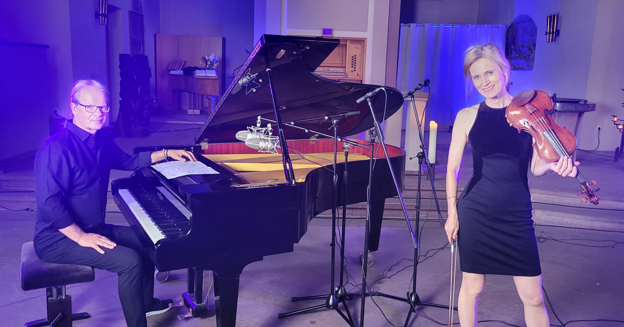 Das Duo Blue Blossom stellt der gegenwärtigen Politik Amerikas dabei ausgewählte Jazz Standards aus dem ‚Great American Songbook‘ gegenüber, die das Thema Freiheit, Würde und Menschlichkeit in wunderbaren unvergessenen Melodien verkörpern. Dabei wird erfahrbar, wie wesentlich wir von dem Sehnen und Streben nach Frieden und Sicherheit gerade in der gegenwärtigen Situation geprägt sind. Strahlende Geige und perlendes Piano im Zwiegespräch bei sowohl nachdenklichen wie auch mitreißenden Passagen. Ein zeitloses Programm mit Musik von schwebender Eleganz